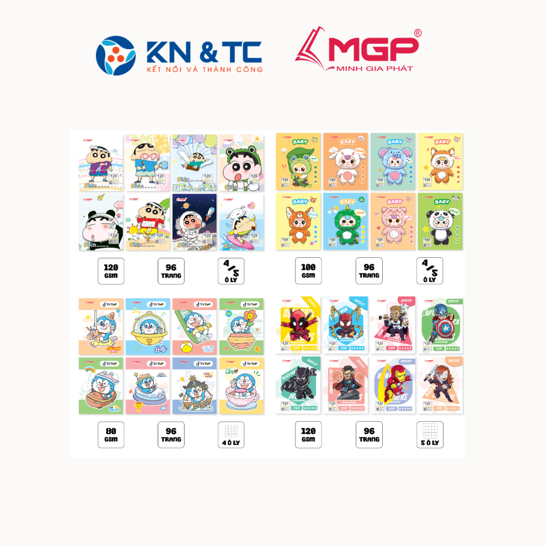 MGP là thương hiệu đang lên với phân khúc giá thành hợp lý nhưng vẫn đảm bảo được tiêu chuẩn giấy trắng sạch và thiết kế bìa hiện đại, năng động phù hợp với giới trẻ.