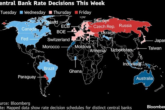 Những ngân hàng trung ương sẽ đưa ra quyết định lãi suất trong tuần này (Ảnh: Bloombreg)